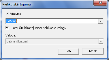 Šajā logā vari apskatīt jau esošos izkārtojumus, kā arī norādīt tastatūras noklusējuma izkārtojumu.